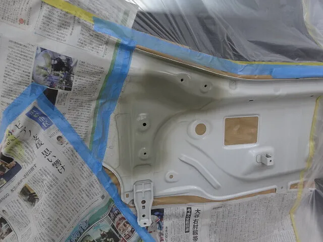 白系の塗装は特に光の加減で色味の差が出やすいため、隣接パネルとの色合いを確認しながら丁寧に仕上げました。