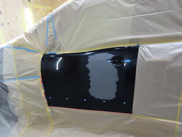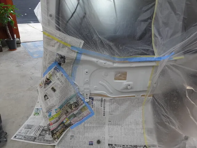 マスキングを丁寧に施し、周囲に塗料が付着しないよう養生を行ったうえでスプレーを吹き付けます。