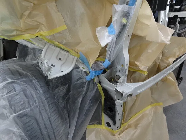 見た目以上に内部構造まで損傷が及んでいたため、骨格の修正を含む鈑金塗装修理を行いました。
