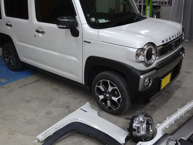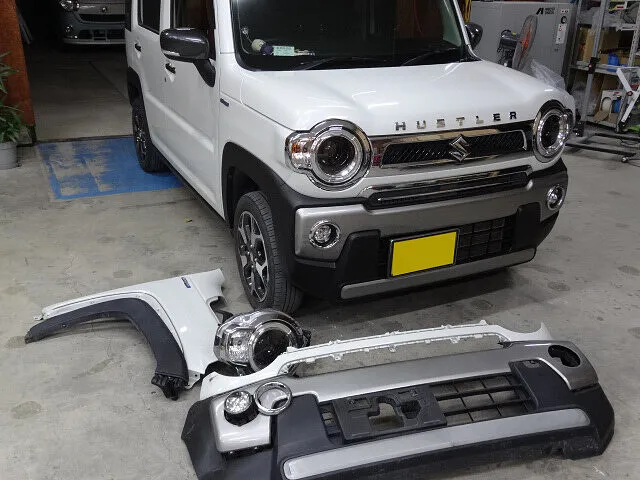 浜松市 フロントフェンダー交換・フロントバンパー交換 スズキ ハスラー|板金塗装