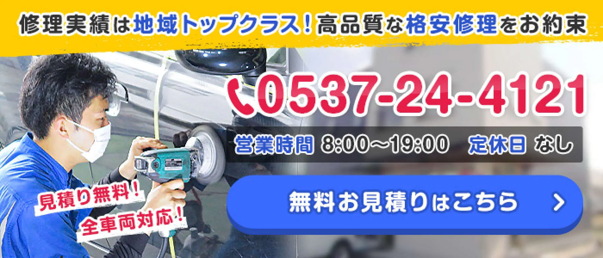 掛川市で板金塗装なら、ディーラ品質で低コストの三和自動車にご相談ください。キズへこみ修理から塗装剥げ修理やドアキズ修理など、傷の大小問わず対応。