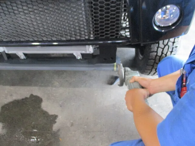 今回は、フロントバンパーカスタムと同時に行う事がよくある、リフトアップは不要とのこと。