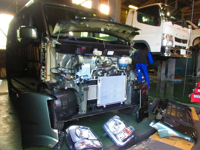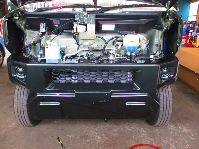 エブリィワゴンにジムリィのフェイスキットを取り付けていきます。