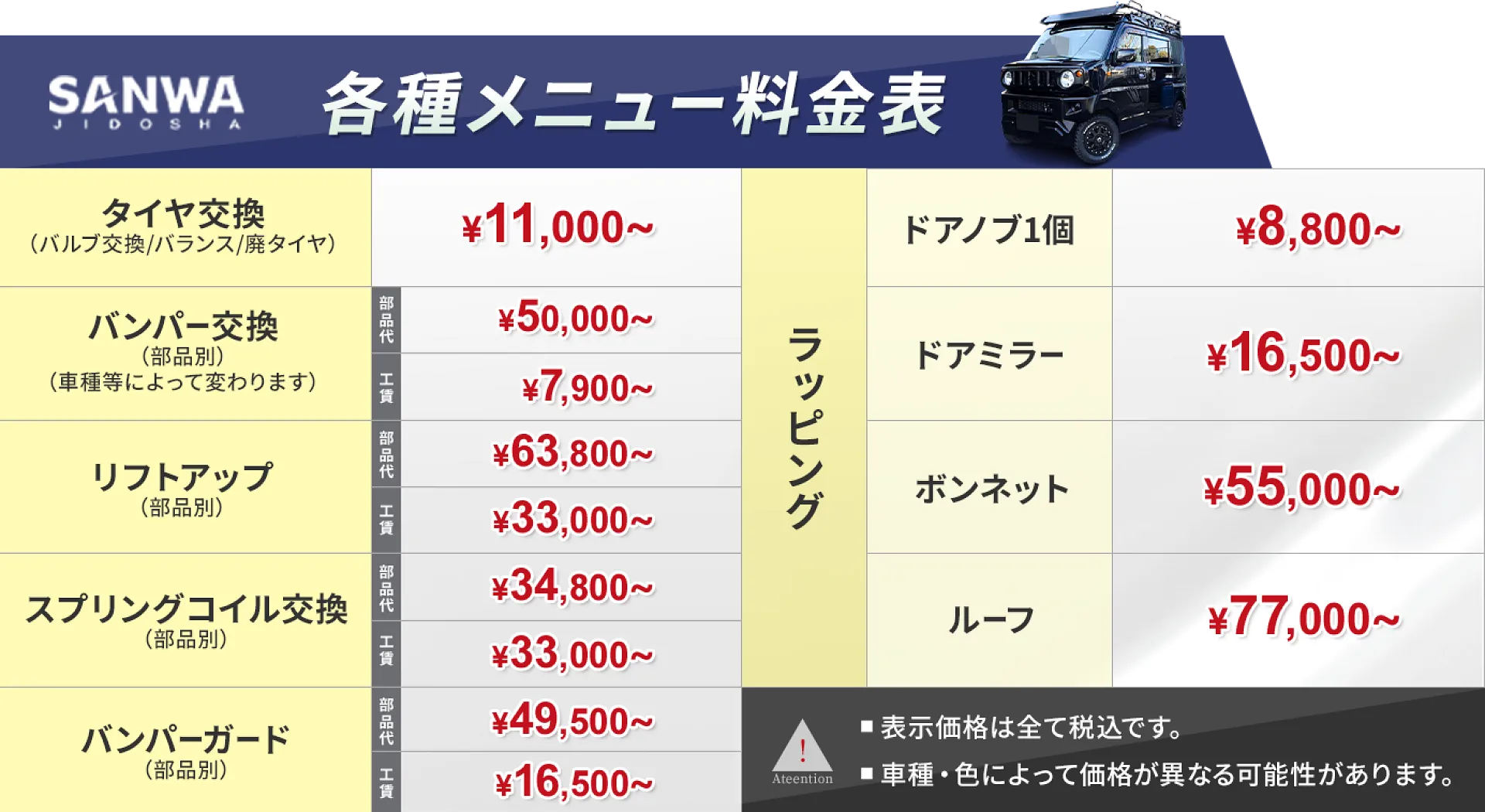 ※車種・色によって価格が異なる可能性があります。