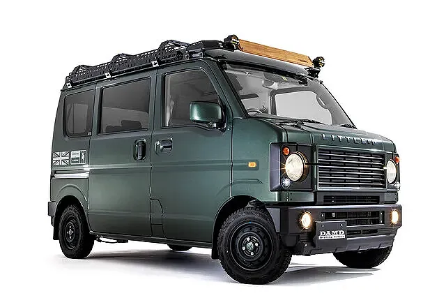 ダムドの人気ボディキット "リトルD."にバン仕様が仲間入り。エブリイをクラシックなランドローバー・ディフェンダー風にするボディキットです。