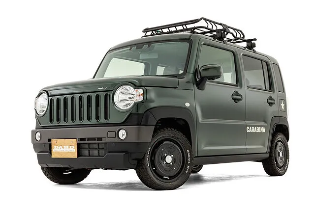 カラビナは、ジムニーの1980年代モデルをオマージュしたようなデザインで、スズキハスラーをよりワイルドでアクティブな外観に変えることができます。