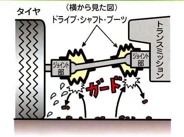 ドライブシャフトブーツが破けてしまうと、水や泥がベアリングに入り、異音が出るようになります。